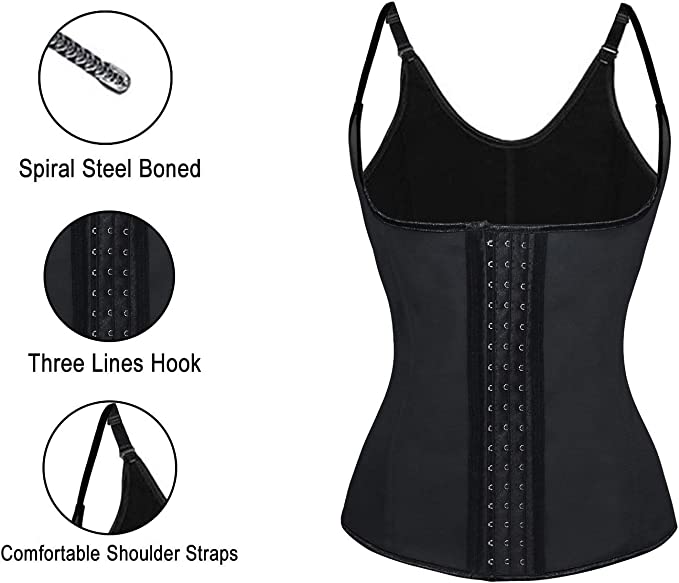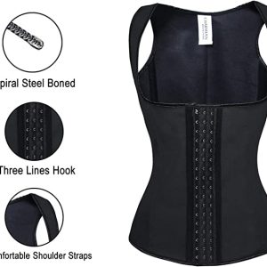 Womens latex waist trainer vest; Spiral steel boned for waist cincher support and keep you in best posture which is flexible and durable, as soft as plastic bones, can bend easily but recover quickly to origin; If you worried about steel boned or not, you can test it with a magnet