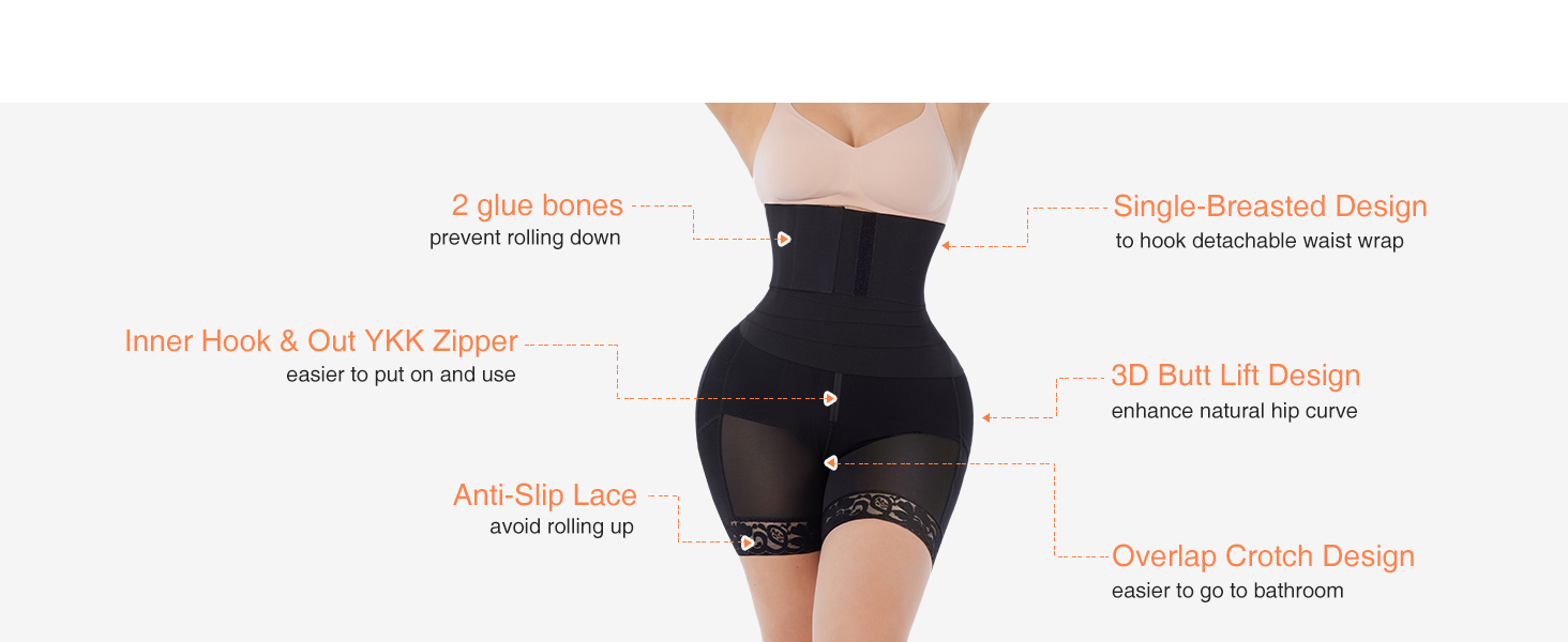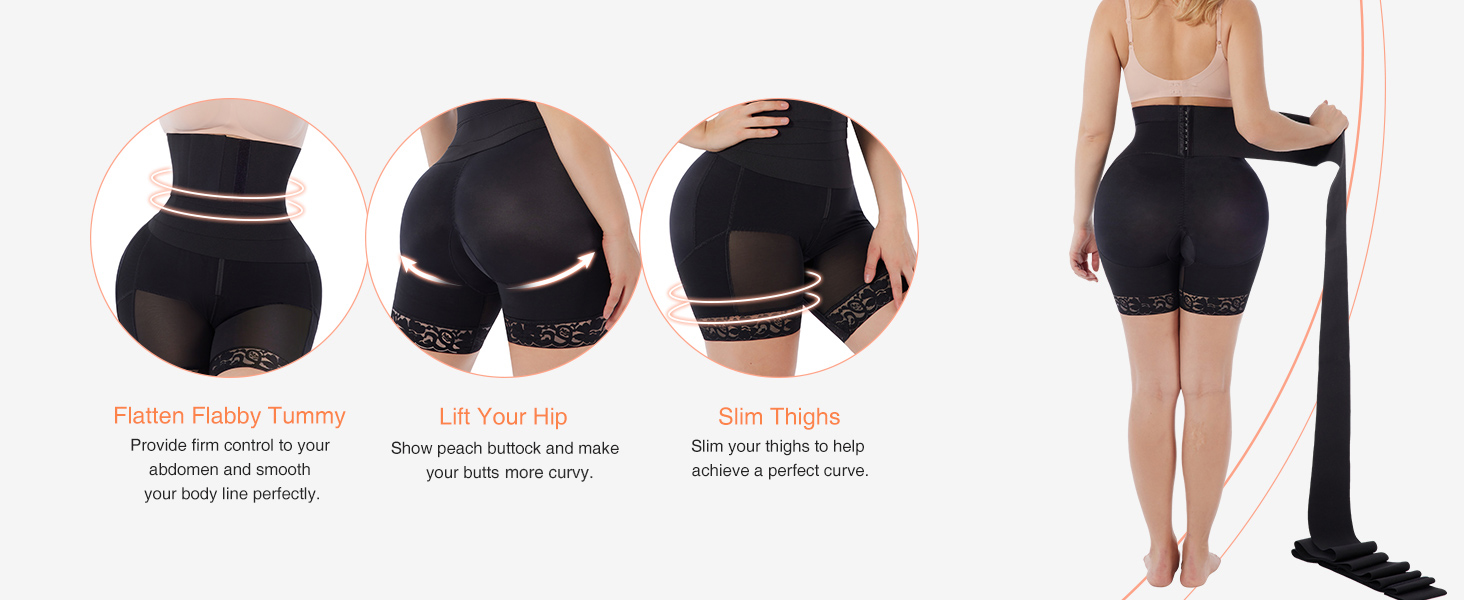 - BUTT LIFTER BODY PANTS + DETACHABLE WAIST WRAP DESIGN: Compared with other body pants, our butt lifter panties can combined with detachable waist wrap to strengthen the compression of the abdomen and quickly reduce the waistline. And our body pants unique hip wrinkles design helps you tighten and lift up your hips in a natural way, enhancing hip abundant with no panty line. This butt lifter short will definitely make your booty look round fuller, bigger and sexier.