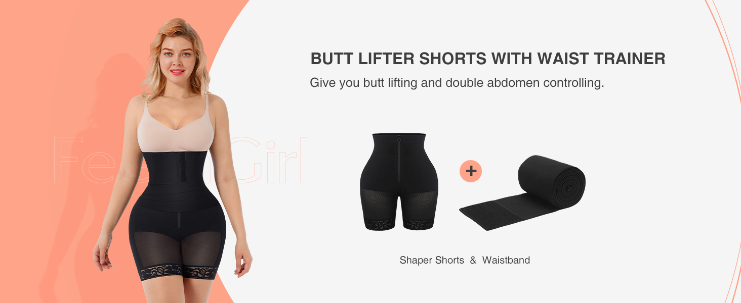 FeelinGirl Shapewear for Women Tummy Control Faja Butt Lifter Body Shaper Thigh Slimmer Shorts with Removable Waist Wrap