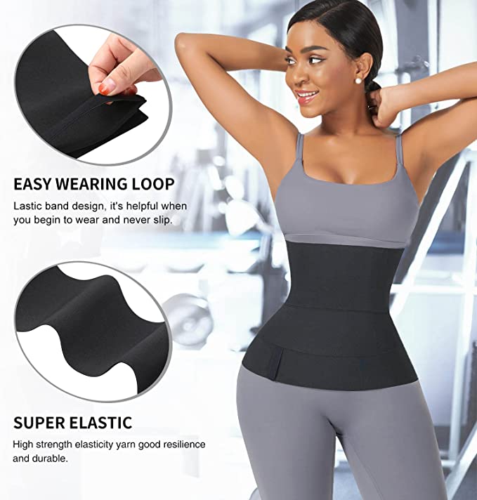 FeelinGirl Waist Trainer for Women Waist Trimmer Wraps for Stomach with Loop Snatch Bandage Wrap Free Size Tummy Wrap